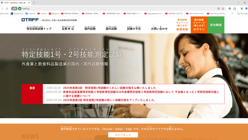 Từ năm 2026 trở đi, Kỳ thi Kỹ năng Chuyên ngành Sản xuất Thực phẩm và Đồ uống (SSE) số 1, Kỳ thi Kỹ năng Chuyên ngành Sản xuất Thực phẩm và Đồ uống (SSE) số 2 và Kỳ thi Kỹ năng Chuyên ngành Dịch vụ Thực phẩm (SSE) số 1 sẽ do OTAFF tổ chức trong nước. Kỳ thi loại 2 sẽ được chuyển sang hình thức CBT (Thi trên máy tính, trong đó thí sinh làm bài thi trên máy tính tại trung tâm thi). Sau khi chuyển sang hình thức CBT, số lượng bài thi và địa điểm thi sẽ được mở rộng đáng kể so với các kỳ thi trước năm 2025 (kỳ thi cuối cùng sẽ được tổ chức vào tháng 1 năm 2026), như được trình bày bên dưới.